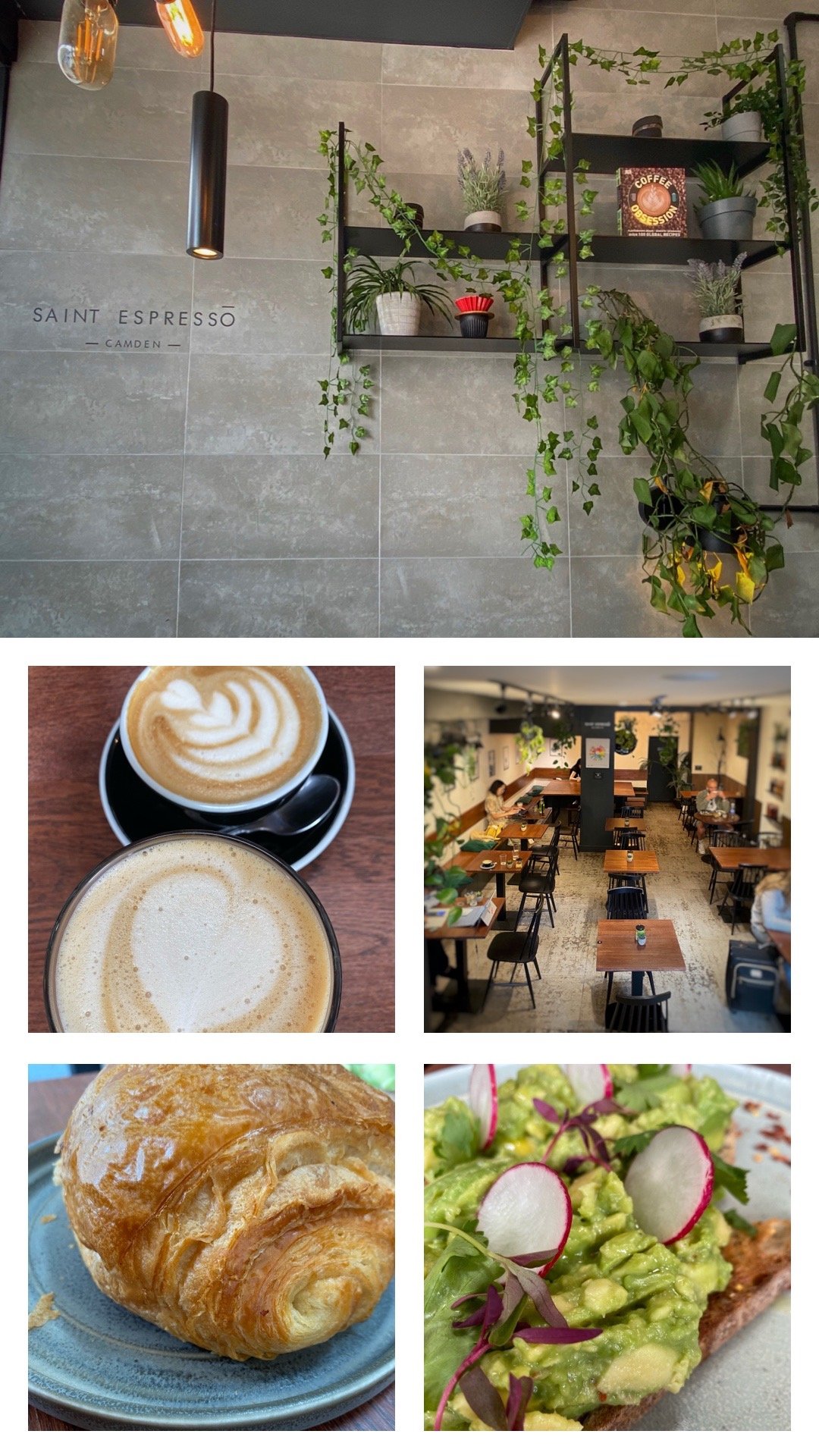 Situé près du métro Mornington Crescent (point d’accès sud de Camden High St.) ce café a un grand espace au sous-sol, de jolies décorations vertes, et plusieurs offres « Plant Based » sur leur menu.