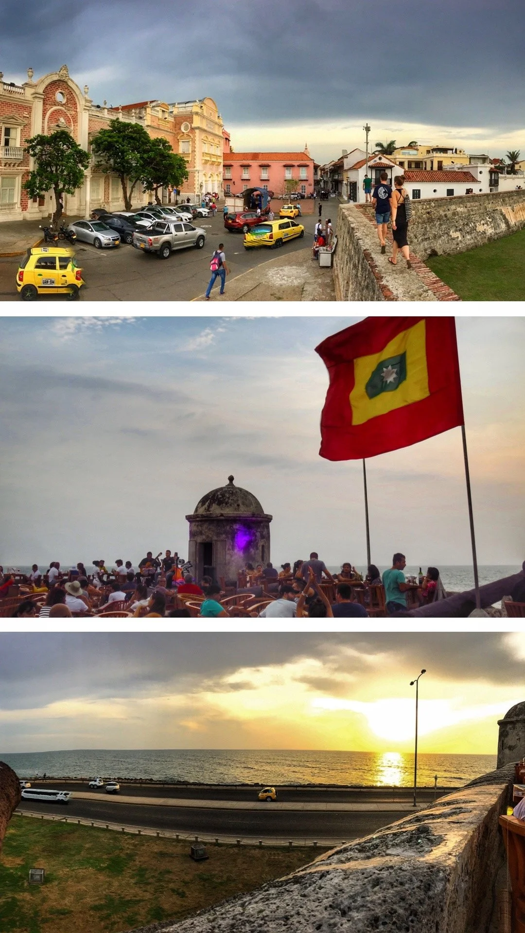 La couleur sombre des pierres de la forteresse offre un contraste fort avec les rues tellement colorées de la ville. La sobriété de la forteresse contraste aussi avec la grandiloquence des grands hôtels modernes du quartier Boca Grande, visibles depuis les remparts à l’ouest !