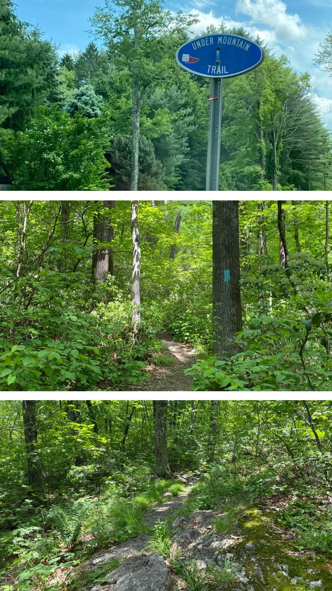 3 miles north of the town of Salisbury, on Undermountain Road, you will find a parking lot that is the beginning of the Undermountain Trail, and includes a bathroom. From there, you can do a 6 miles loop that includes Bear Mountain… and a tiny bit of Massachussetts.