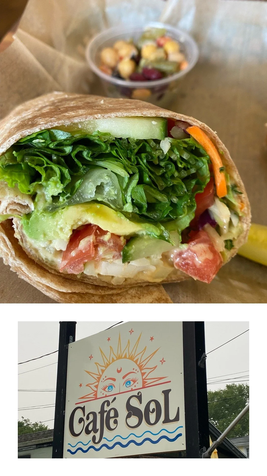 They serve breakfast all day and have a variety of sandwiches, salads, and burgers. There are a few vegan items on the menu, such as the Goddess Wrap pictured here, and many more can be made vegan. The staff is very friendly and accommodating, don’t hesitate to ask for vegan possibilities!