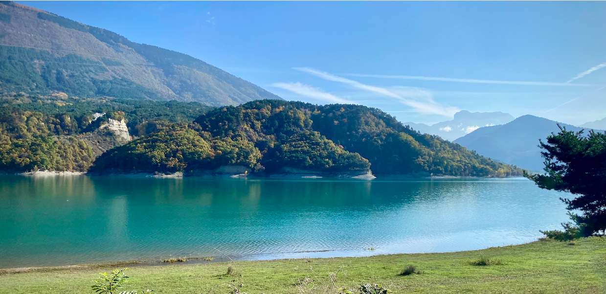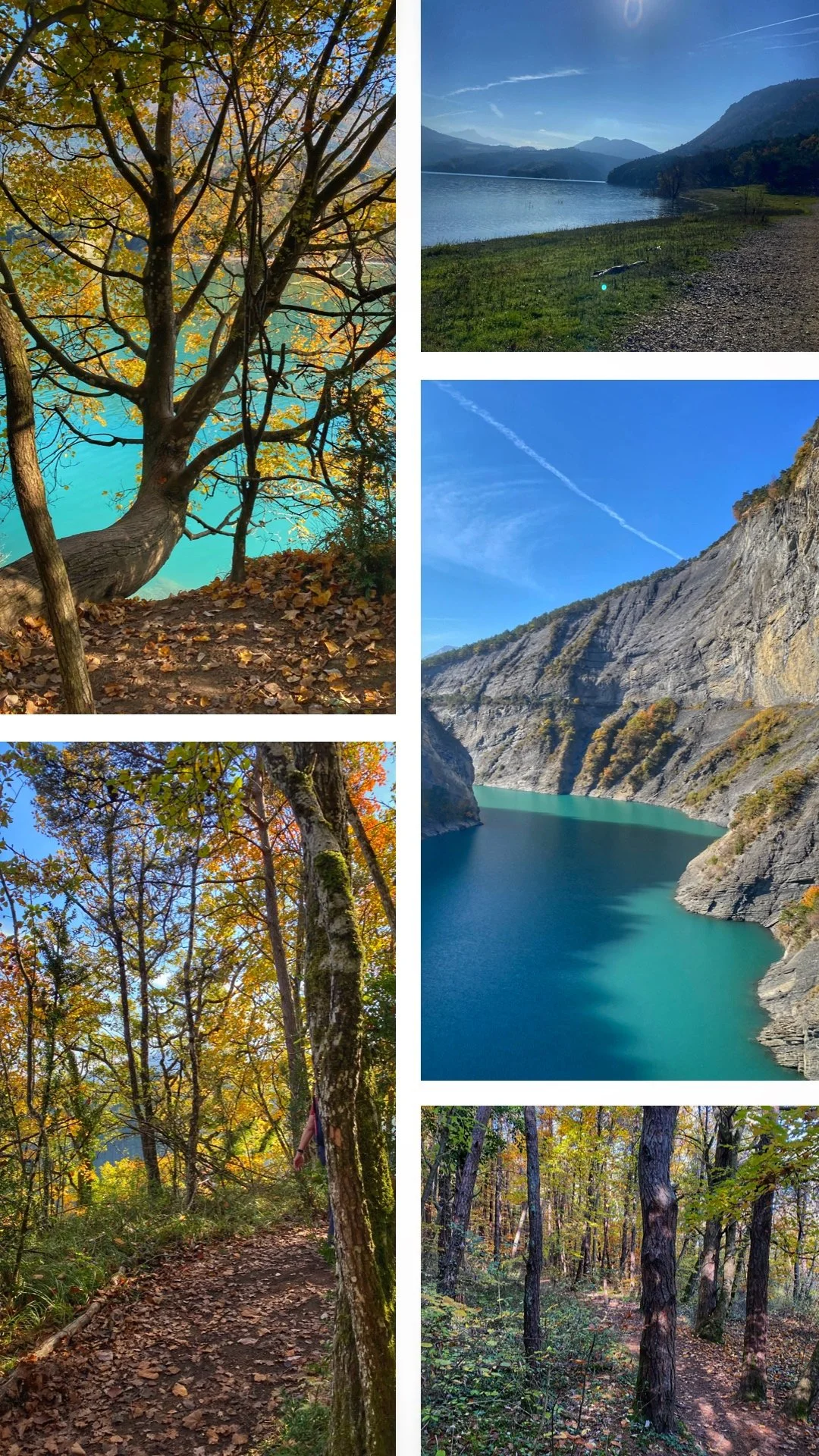 En haute saison, il y a un bateau qui traverse le lac et vous permet de faire une randonnée pour revenir à votre voiture. Des parkings sont situés de chaque côté du lac, et il y en a un aussi entre les deux passerelles, il n’est donc pas nécessaire de traverser les deux passerelles si vous préférez une randonnée plus courte. Certaines photos ci-dessous sont du mois de novembre (et vous pouvez donc y voir les magnifiques couleurs de l’automne!): les parking sont gratuits hors saison, les toilettes sont ouverts mais les buvettes sont fermées). Si vous ne voulez pas prendre le bateau, où si vous vous rendez au Lac de Monteynard-Avignonet lorsque le bateau n’est pas en service, il est possible de faire une randonnée aller-retour, du parking des Vignes jusqu’à la passerelle du Drac, pour environ 14 km.