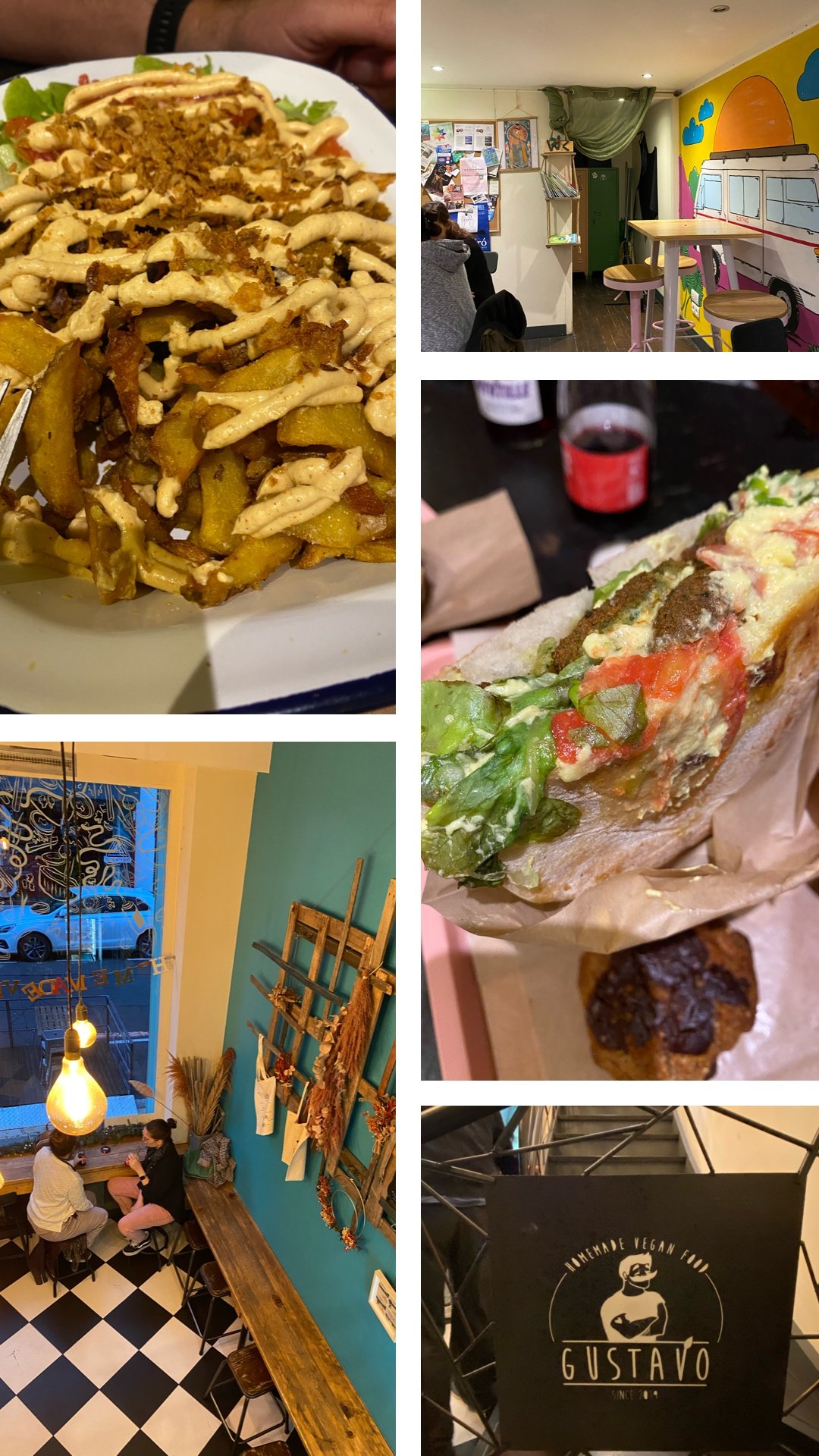 Pas très loin de Salsita se trouve Gustavo, un restaurant très populaire, et si vous devez attendre… ça en vaut la peine. Le menu est 100% vegan! Le plat de frites était énorme, et la pita un peu difficile à manger, mais tout était délicieux.