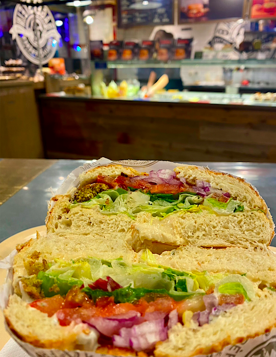 Juste en face des Halles se trouve Bagelstein, qui a une option marquée vegan sur leur menu: le Joséphine (falafel, houmous, oignons rouges, tomate, salades, sauce menthe).