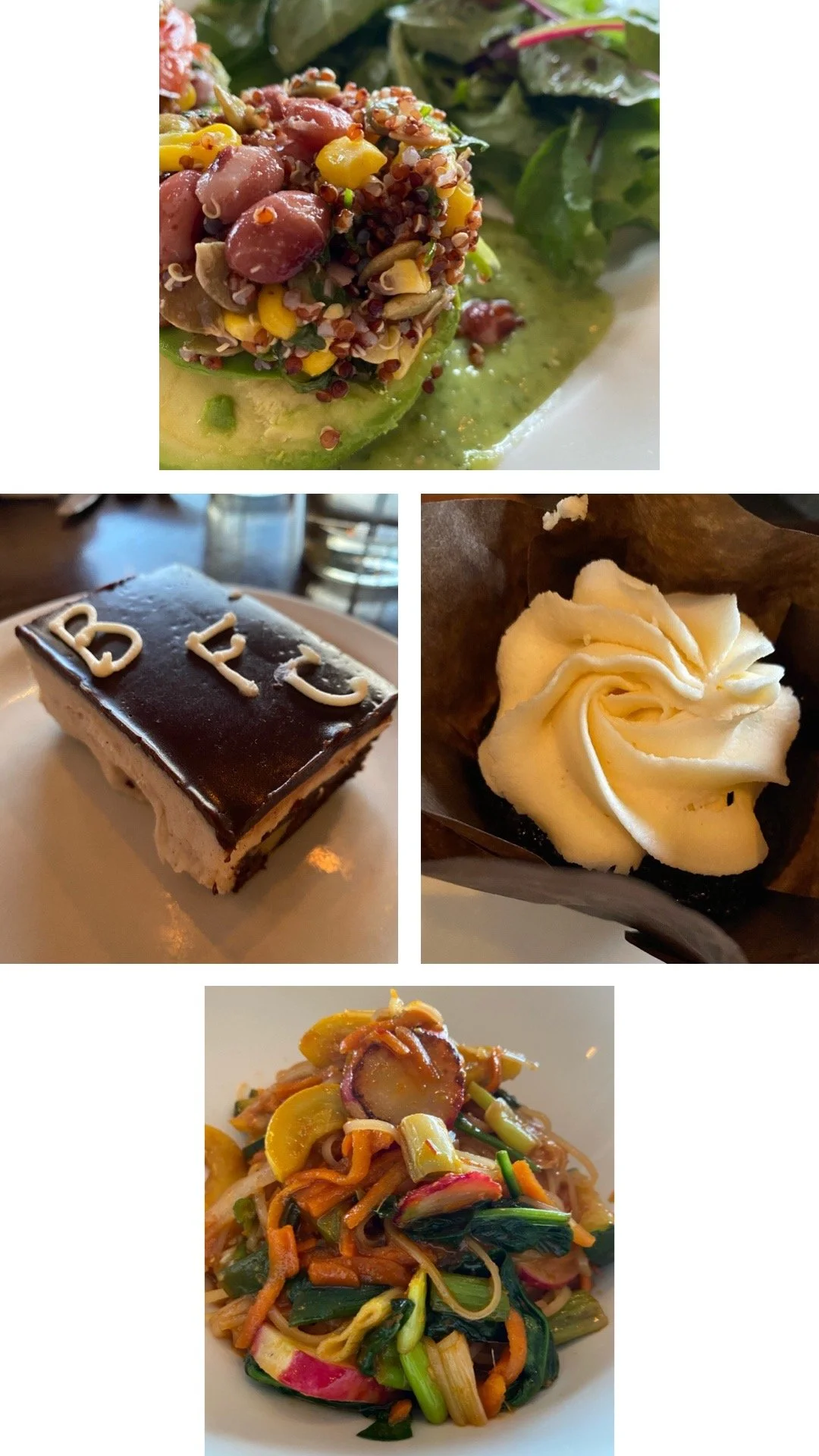 Pictured left, top is the Stuffed Avocado with Quinoa and bottom is the Kung Pao, from the dinner menu.