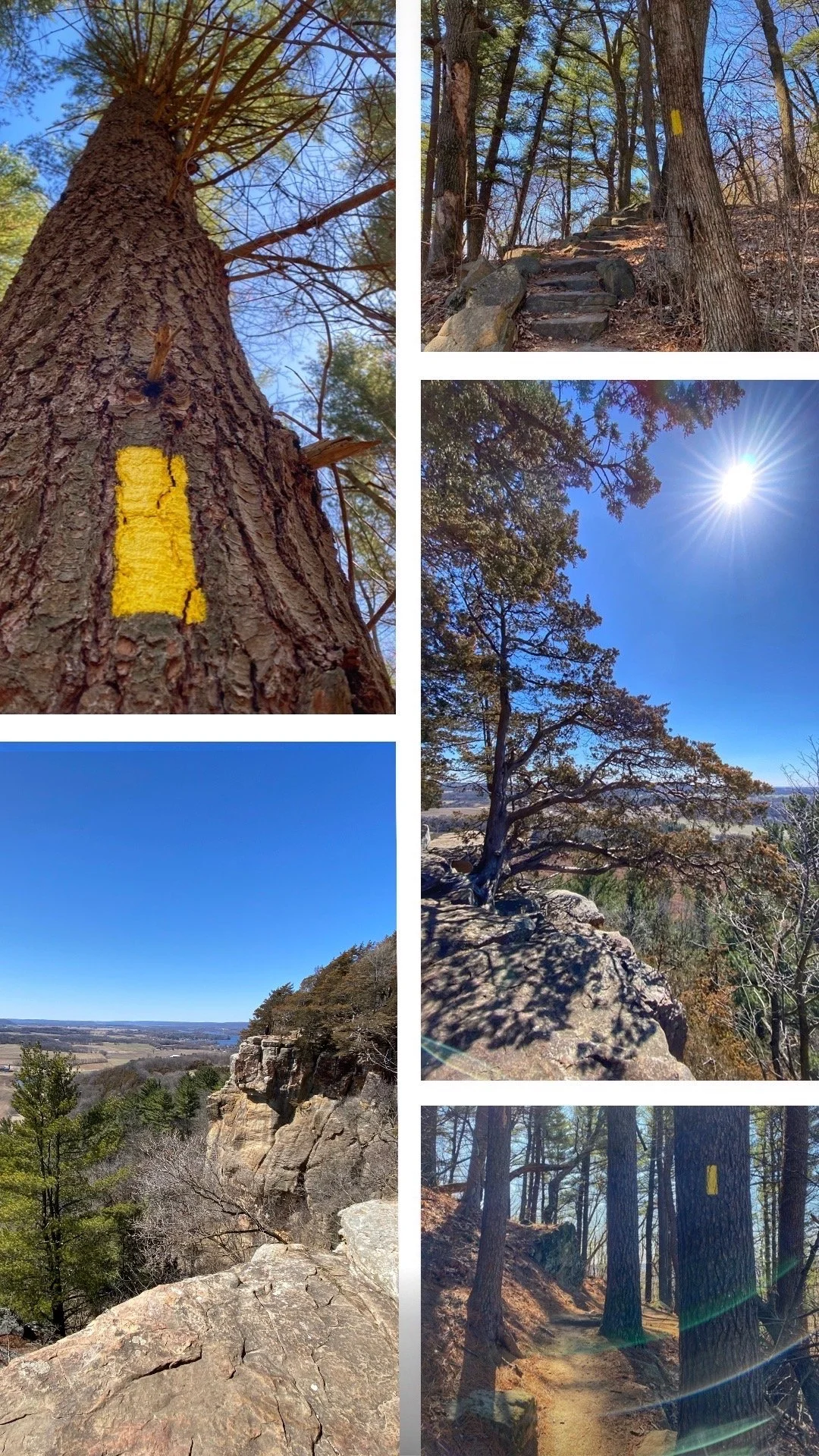 The loop leading up to Gibraltar rock consists of a section of yellow blazes (part of the Ice Age Trail) and a short (o.6 miles) white blazed section connecting the two parking lots.