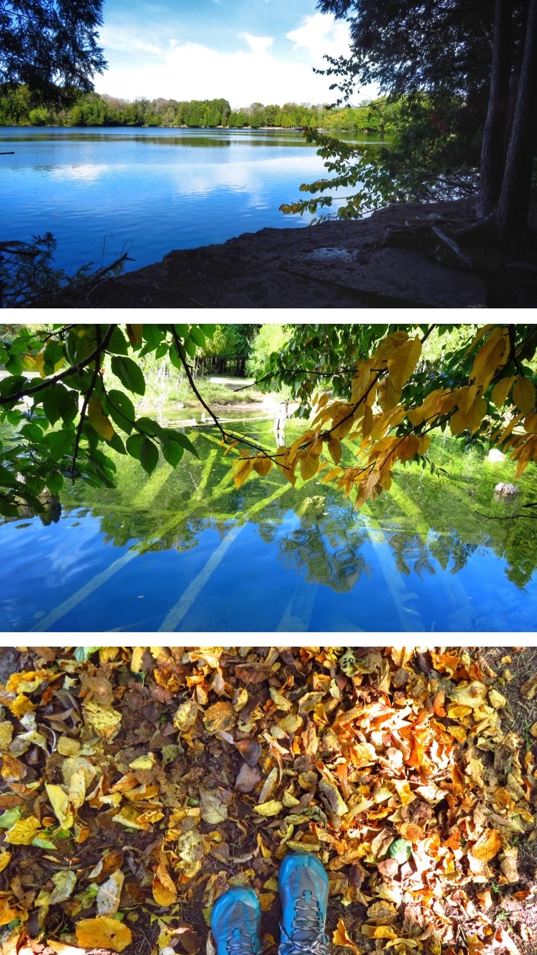 As the name indicates, this trail goes around the quarry, which is now a lake, and it’s pretty neat to see the water through the trees from the trail.